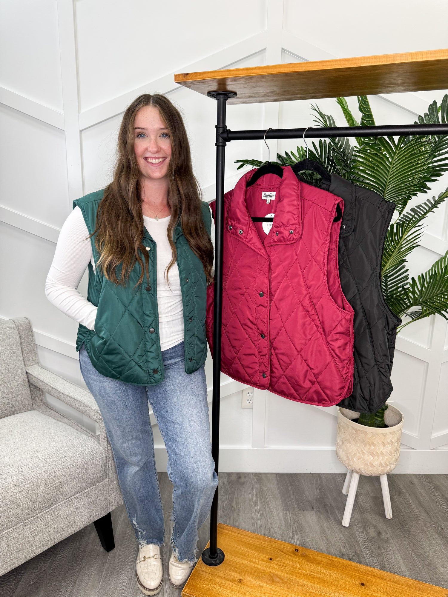 Stay cozy and stylish this season with our Quilted Puffer Vest Jacket featuring a fully lined interior! Perfect for layering, this chic vest adds warmth without the bulk, making it your go-to outerwear choice. Embrace the cold in style and elevate your wardrobe with this must-have piece!